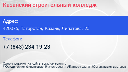 Казанский строительный колледж по адресу 420075, Татарстан, Казань, Липатова, 25 в дальнейшем Организация, размещена в следующих категориях: