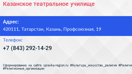 Казанское театральное училище по адресу 420111, Татарстан, Казань, Профсоюзная, 19 в дальнейшем Организация, размещена в следующих категориях: