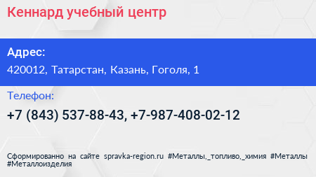 Кеннард, учебный центр по адресу 420012, Татарстан, Казань, Гоголя, 1 в дальнейшем Организация, размещена в следующих категориях: