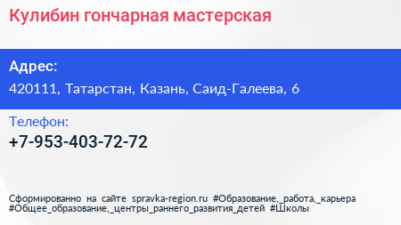 Кулибин, гончарная мастерская по адресу 420111, Татарстан, Казань, Саид-Галеева, 6 в дальнейшем Организация, размещена в следующих категориях: