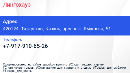 Лингохауз по адресу 420124, Татарстан, Казань, проспект Ямашева, 51 в дальнейшем Организация, размещена в следующих категориях: