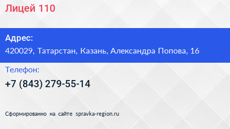 Лицей №110 по адресу 420029, Татарстан, Казань, Александра Попова, 16 в дальнейшем Организация, размещена в следующих категориях: