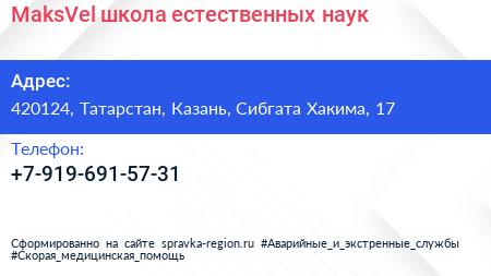 MaksVel, школа естественных наук по адресу 420124, Татарстан, Казань, Сибгата Хакима, 17 в дальнейшем Организация, размещена в следующих категориях: