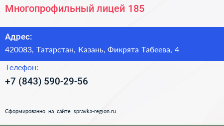 Многопрофильный лицей №185 по адресу 420083, Татарстан, Казань, Фикрята Табеева, 4 в дальнейшем Организация, размещена в следующих категориях: