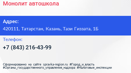 Монолит, автошкола по адресу 420111, Татарстан, Казань, Тази Гиззата, 1Б в дальнейшем Организация, размещена в следующих категориях: