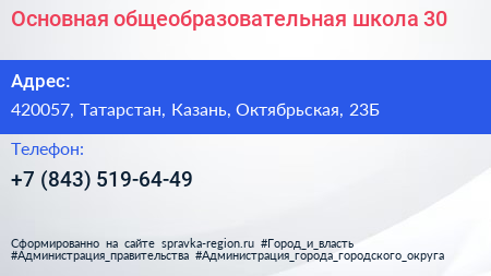 Основная общеобразовательная школа №30 по адресу 420057, Татарстан, Казань, Октябрьская, 23Б в дальнейшем Организация, размещена в следующих категориях: