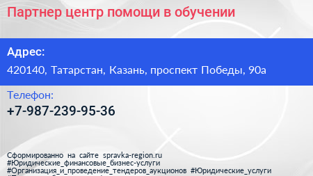 Партнер, центр помощи в обучении по адресу 420140, Татарстан, Казань, проспект Победы, 90а в дальнейшем Организация, размещена в следующих категориях: