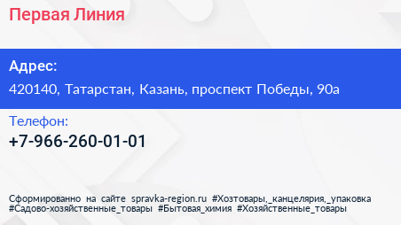 Первая Линия по адресу 420140, Татарстан, Казань, проспект Победы, 90а в дальнейшем Организация, размещена в следующих категориях:
