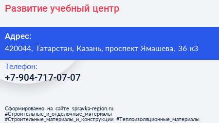 Развитие, учебный центр по адресу 420044, Татарстан, Казань, проспект Ямашева, 36 к3 в дальнейшем Организация, размещена в следующих категориях: