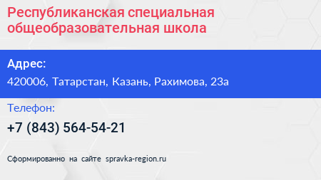 Республиканская специальная общеобразовательная школа по адресу 420006, Татарстан, Казань, Рахимова, 23а в дальнейшем Организация, размещена в следующих категориях: