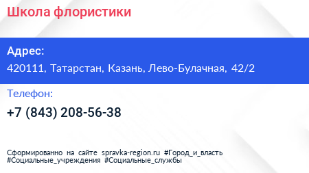 Школа флористики по адресу 420111, Татарстан, Казань, Лево-Булачная, 42/2 в дальнейшем Организация, размещена в следующих категориях: