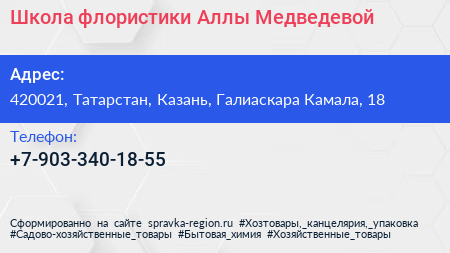 Школа флористики Аллы Медведевой по адресу 420021, Татарстан, Казань, Галиаскара Камала, 18 в дальнейшем Организация, размещена в следующих категориях: