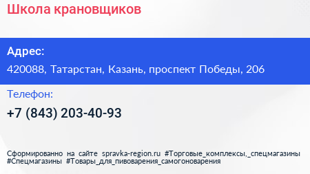 Школа крановщиков по адресу 420088, Татарстан, Казань, проспект Победы, 206 в дальнейшем Организация, размещена в следующих категориях: