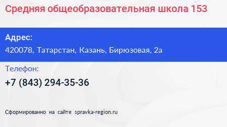Средняя общеобразовательная школа №153 по адресу 420078, Татарстан, Казань, Бирюзовая, 2а в дальнейшем Организация, размещена в следующих категориях: