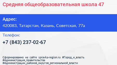 Средняя общеобразовательная школа №47 по адресу 420083, Татарстан, Казань, Советская, 77а в дальнейшем Организация, размещена в следующих категориях: