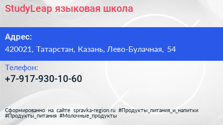 StudyLeap, языковая школа по адресу 420021, Татарстан, Казань, Лево-Булачная, 54 в дальнейшем Организация, размещена в следующих категориях: