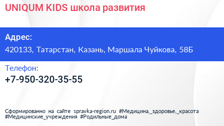 UNIQUM KIDS, школа развития по адресу 420133, Татарстан, Казань, Маршала Чуйкова, 58Б в дальнейшем Организация, размещена в следующих категориях: