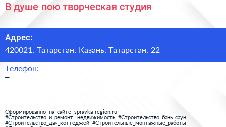 В душе пою, творческая студия по адресу 420021, Татарстан, Казань, Татарстан, 22 в дальнейшем Организация, размещена в следующих категориях: