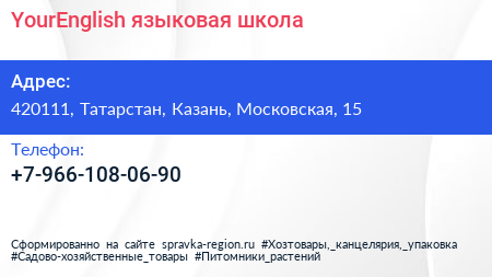 YourEnglish, языковая школа по адресу 420111, Татарстан, Казань, Московская, 15 в дальнейшем Организация, размещена в следующих категориях:
