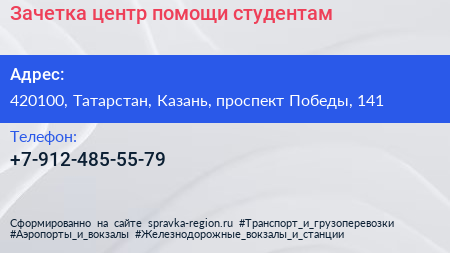 Зачетка, центр помощи студентам по адресу 420100, Татарстан, Казань, проспект Победы, 141 в дальнейшем Организация, размещена в следующих категориях: