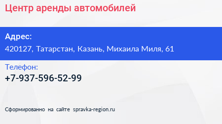 Центр аренды автомобилей по адресу 420127, Татарстан, Казань, Михаила Миля, 61 в дальнейшем Организация, размещена в следующих категориях: