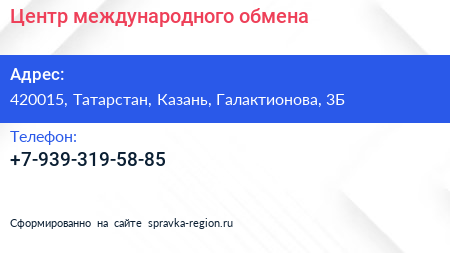 Центр международного обмена по адресу 420015, Татарстан, Казань, Галактионова, 3Б в дальнейшем Организация, размещена в следующих категориях: