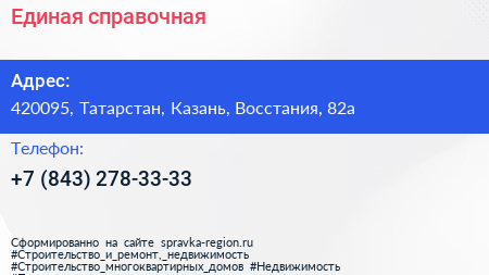 Единая справочная по адресу 420095, Татарстан, Казань, Восстания, 82а в дальнейшем Организация, размещена в следующих категориях: