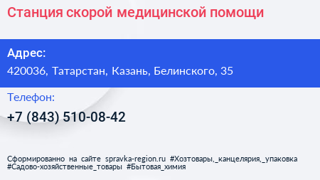Станция скорой медицинской помощи по адресу 420036, Татарстан, Казань, Белинского, 35 в дальнейшем Организация, размещена в следующих категориях: