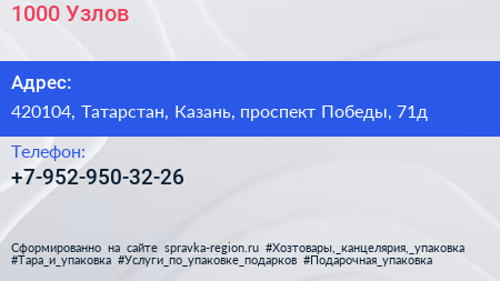 1000 Узлов по адресу 420104, Татарстан, Казань, проспект Победы, 71д в дальнейшем Организация, размещена в следующих категориях: