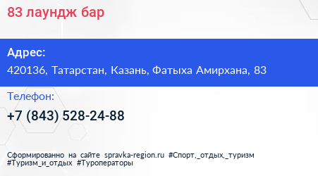 83, лаундж-бар по адресу 420136, Татарстан, Казань, Фатыха Амирхана, 83 в дальнейшем Организация, размещена в следующих категориях: