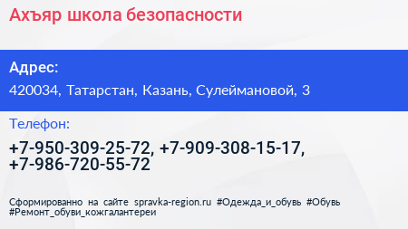 Ахъяр, школа безопасности по адресу 420034, Татарстан, Казань, Сулеймановой, 3 в дальнейшем Организация, размещена в следующих категориях: