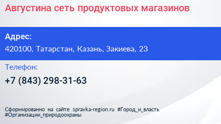 Августина, сеть продуктовых магазинов по адресу 420100, Татарстан, Казань, Закиева, 23 в дальнейшем Организация, размещена в следующих категориях: