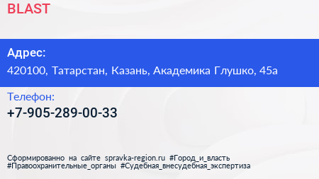 BLAST по адресу 420100, Татарстан, Казань, Академика Глушко, 45а в дальнейшем Организация, размещена в следующих категориях: