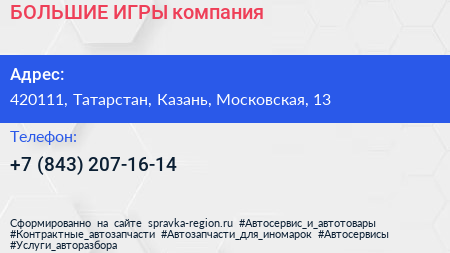 БОЛЬШИЕ ИГРЫ, компания по адресу 420111, Татарстан, Казань, Московская, 13 в дальнейшем Организация, размещена в следующих категориях: