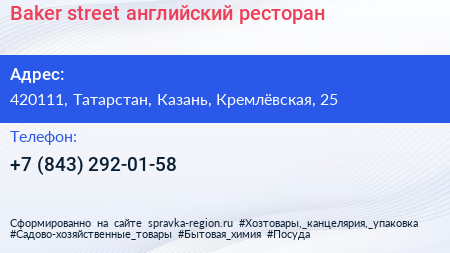 Baker street, английский ресторан по адресу 420111, Татарстан, Казань, Кремлёвская, 25 в дальнейшем Организация, размещена в следующих категориях: