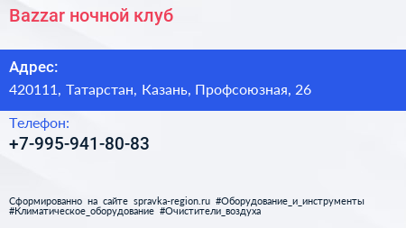 Bazzar, ночной клуб по адресу 420111, Татарстан, Казань, Профсоюзная, 26 в дальнейшем Организация, размещена в следующих категориях: