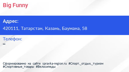 Big-Funny по адресу 420111, Татарстан, Казань, Баумана, 58 в дальнейшем Организация, размещена в следующих категориях: