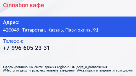 Cinnabon, кафе по адресу 420049, Татарстан, Казань, Павлюхина, 91 в дальнейшем Организация, размещена в следующих категориях: