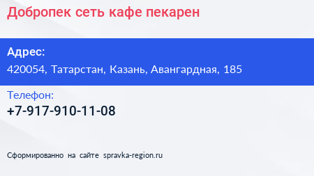 Добропек, сеть кафе-пекарен по адресу 420054, Татарстан, Казань, Авангардная, 185 в дальнейшем Организация, размещена в следующих категориях: