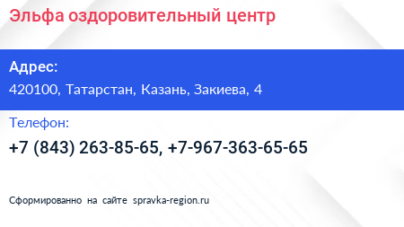 Эльфа, оздоровительный центр по адресу 420100, Татарстан, Казань, Закиева, 4 в дальнейшем Организация, размещена в следующих категориях: