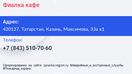 Для связи с организацией воспользуйтесь номером телефона: +7 (843) 510-70-60. Ежедневно с 08:00 до 24:00, вы можете обратиться в эту организацию.