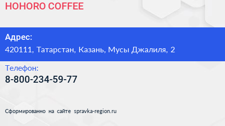 HOHORO COFFEE по адресу 420111, Татарстан, Казань, Мусы Джалиля, 2 в дальнейшем Организация, размещена в следующих категориях: