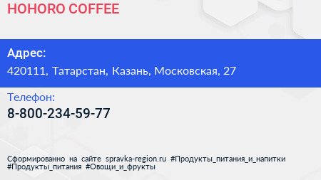 HOHORO COFFEE по адресу 420111, Татарстан, Казань, Московская, 27 в дальнейшем Организация, размещена в следующих категориях: