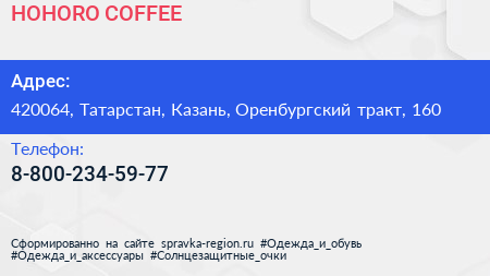 HOHORO COFFEE по адресу 420064, Татарстан, Казань, Оренбургский тракт, 160 в дальнейшем Организация, размещена в следующих категориях: