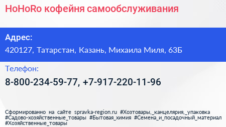 HoHoRo, кофейня самообслуживания по адресу 420127, Татарстан, Казань, Михаила Миля, 63Б в дальнейшем Организация, размещена в следующих категориях: