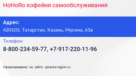 HoHoRo, кофейня самообслуживания по адресу 420103, Татарстан, Казань, Мусина, 61в в дальнейшем Организация, размещена в следующих категориях: