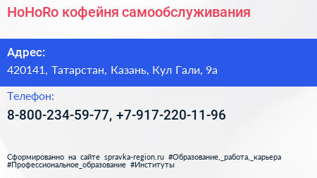 HoHoRo, кофейня самообслуживания по адресу 420141, Татарстан, Казань, Кул Гали, 9а в дальнейшем Организация, размещена в следующих категориях: