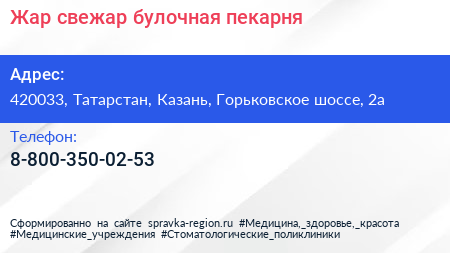Жар свежар, булочная-пекарня по адресу 420033, Татарстан, Казань, Горьковское шоссе, 2а в дальнейшем Организация, размещена в следующих категориях: