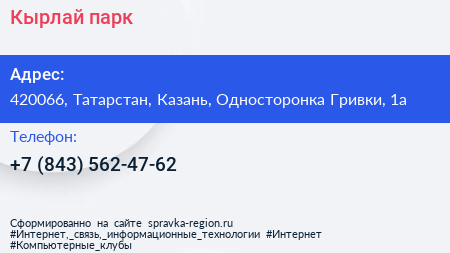 Кырлай, парк по адресу 420066, Татарстан, Казань, Односторонка Гривки, 1а в дальнейшем Организация, размещена в следующих категориях: