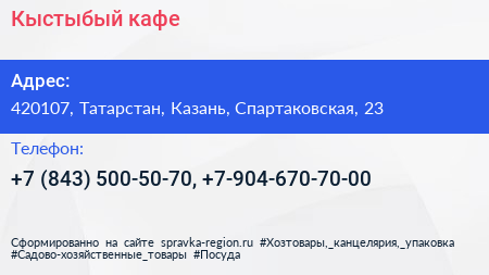 Кыстыбый, кафе по адресу 420107, Татарстан, Казань, Спартаковская, 23 в дальнейшем Организация, размещена в следующих категориях: